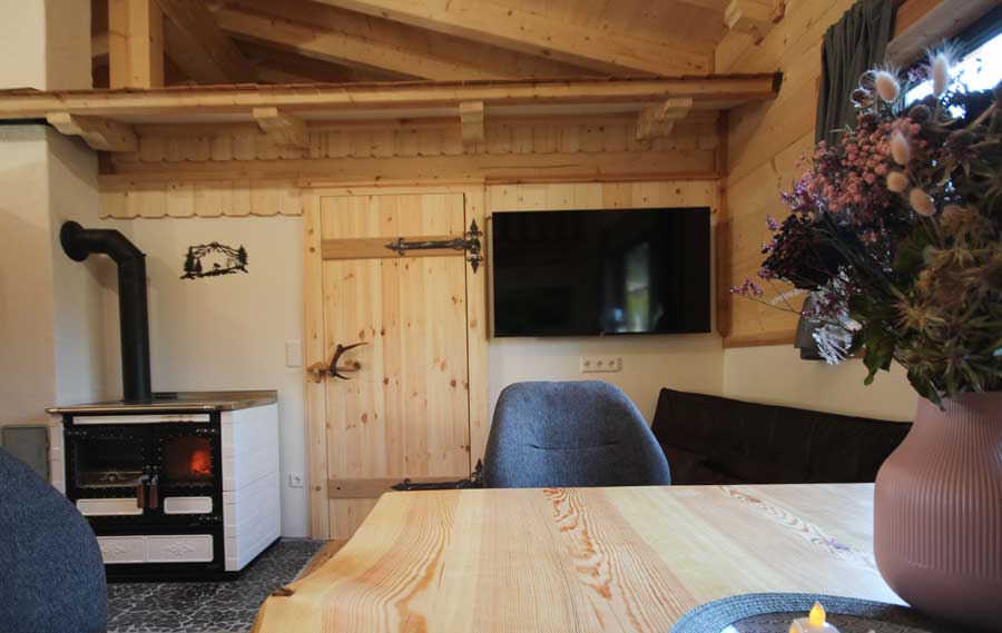 Tischherd (Omas Zeiten) mit Sichtglas inklusive Brennholz für Ihren ganzen Aufenthalt, Schlafcouch, Sat-TV Internetfähig , Highspeed WIFI, Tresor, Radio.