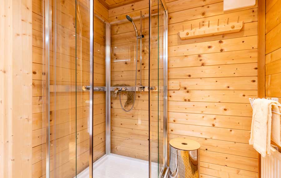 Ein geräumiges Bad mit Dusche und Waschtisch, Haar Föhn, Schminkspiegel, Kosmetiktücher, Seife, genügend Hand- und Badetücher für den gesamten Aufenthalt.